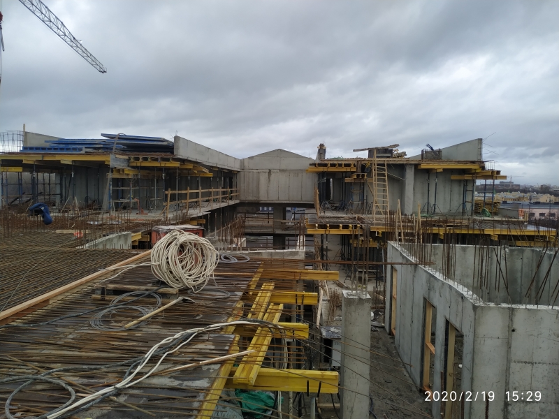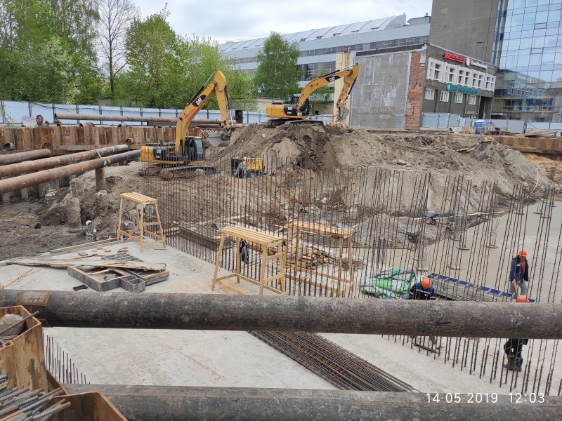 Завершение работ по возведению подземного паркинга, монтаж опалубки и армирование колонн стен 1 этажа.