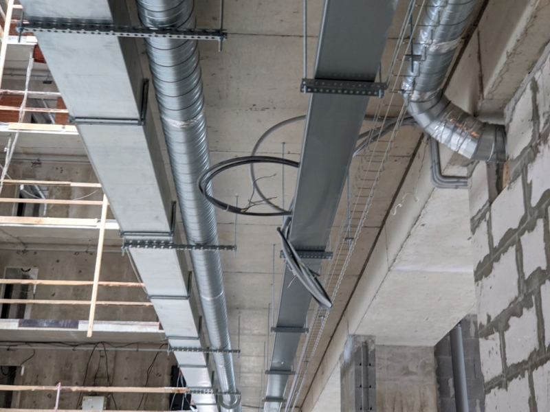 Работы по проведению отопления, монтаж вентиляции, продолжение фасадных отделочных работ